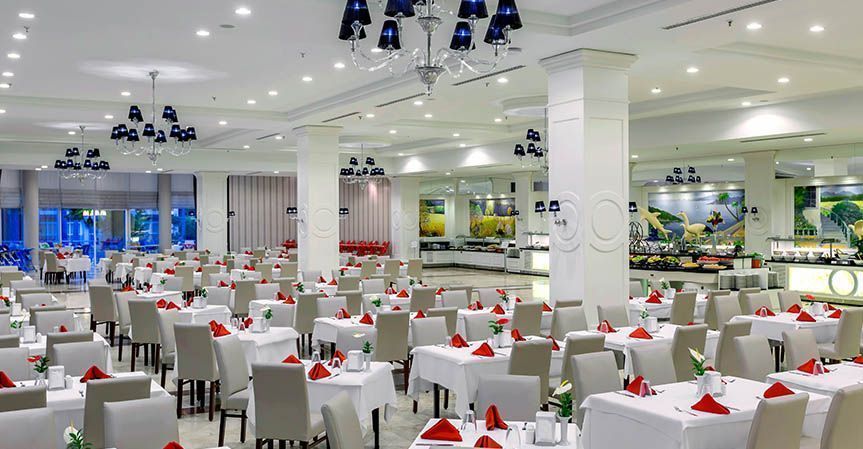 В концепцию входит: завтрак, поздний завтрак, обед и ужин - шведский стол (в связи с пандемией открытый буфет находится за стеклом, подача блюд осуществляется работниками кухни, время работы ресторанов продлено), разнообразные закуски, сладости и мороженое в определенные часы, диетическая кухня, гала-ужин и тематический ужин (1 и 2 раза в неделю соответственно), свежевыжатый апельсиновый сок на завтрак в основном ресторане, местные и некоторые импортные алкогольные и безалкогольные напитки.