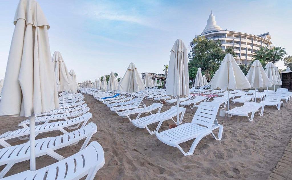 Собственный песчаный пляж находится в 300 метров от отеля, через дорогу. Шезлонги, зонтики, матрацы, пляжные полотенца - бесплатно. Заход в море - песок.