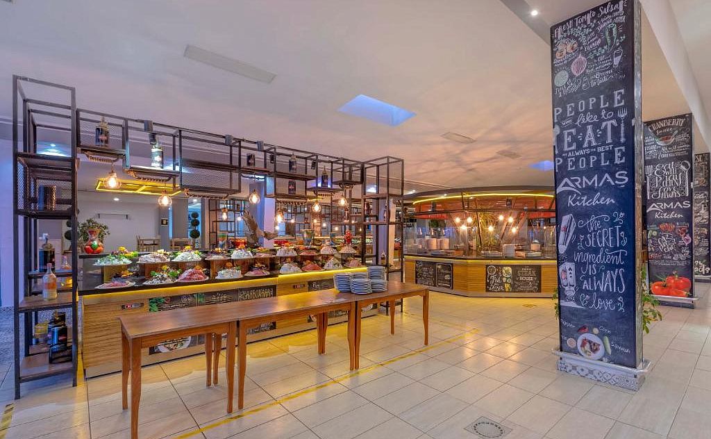 В концепцию входит: завтрак, обед и ужин - шведский стол, поздний завтрак, закуски и сладости в определенные часы, местные алкогольные и безалкогольные напитки (10.00 - 23.00).