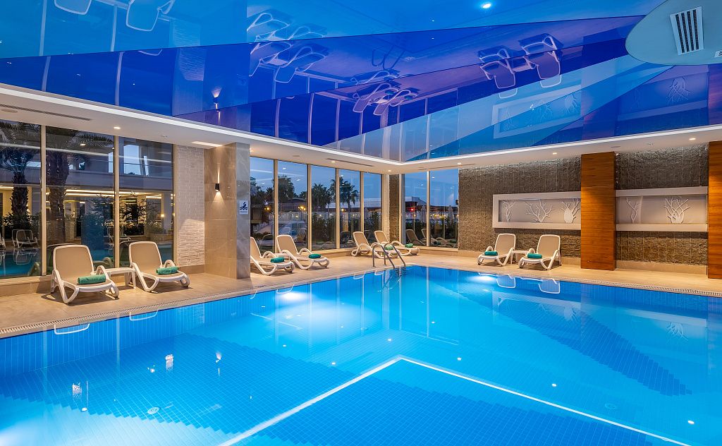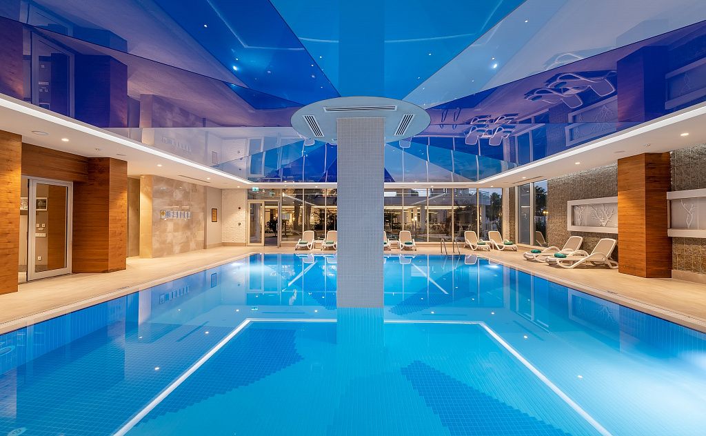 - крытый бассейн с подогревом (в зависимости от погодных условий, в апреле, октябре, ноябре)