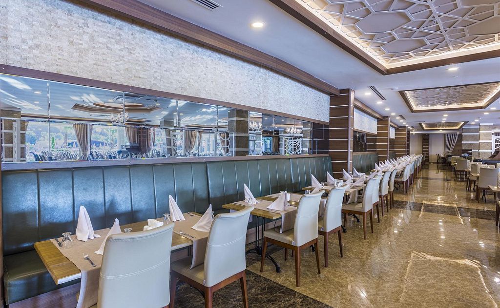В концепцию входит: завтрак, обед, ужин - шведский стол, ночной суп, разнообразные закуски, гёзлеме, сладости с 01.05 по 30.10, мороженое в определенные часы, поздний ужин, диетическое и вегетарианское меню, местные алкогольные и безалкогольные напитки (10.00 - 01.00).