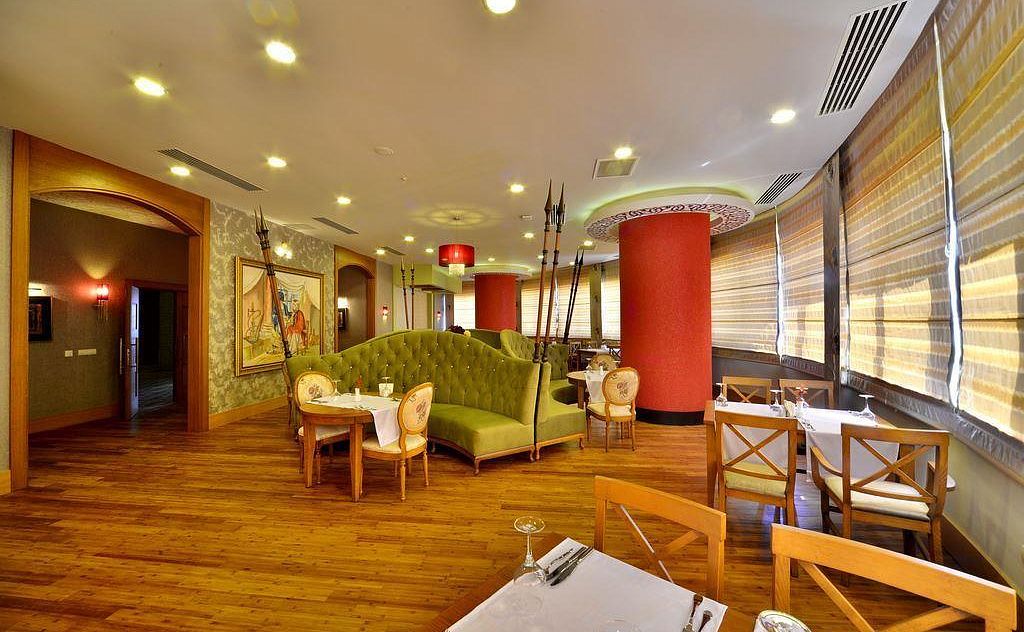 В концепцию входит: завтрак, поздний завтрак, обед и ужин – шведский стол/самообслуживание, тематическая кухня по вечерам в главном ресторане, горячие и холодные закуски и сэндвичи, гёзлеме, кумпир, пицца, донер, выпечка, вафли, сладости и мороженое - в определенные часы (6 дней в неделю), ночные закуски и суп, диетическое и вегетарианское меню, местные и некоторые импортные алкогольные (07.00-00.00) и безалкогольные (круглосуточно) напитки.