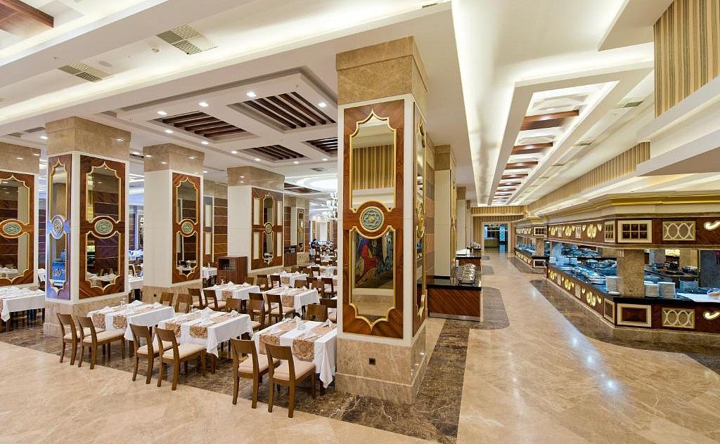 В концепцию входит: завтрак, поздний завтрак, обед и ужин - шведский стол, закуски, десерты, кумпир, гезлеме и мороженое в определенные часы, ночной суп, диетическое и вегетарианское меню, глютен-фри и безлактозное меню, местные алкогольные и безалкогольные напитки (07.00-02.00).